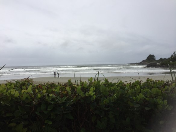 We spent a couple of days on Mackenzie Beach near the bustling little town of Tofino, not surprisingly loving and appreciating all the fresh seafood and at the same time surprised at how abundant the surf culture is there. It’s such a remote area where there is a surf shop or two or three and a fish and chip shack on every corner. I’m not naive enough to have thought there would be no surfing… after all it is the big wave side of the island, but holy cow, Will… The. Water. Is. Freezing! All. The. Time! I crossed off my bucket list a walk on Long Beach where we dipped our toes in the cold Pacific Ocean. This beach known by storm watchers in the winter and surfers the rest of the year is the furthest one can go before the Pacific Ocean eats up land. As I stood there I was reminded of two things. One, the next landform is Japan, thousands of miles away, and two — that you are pretty darn small when you stand beside the ocean where the next piece of land is Japan.