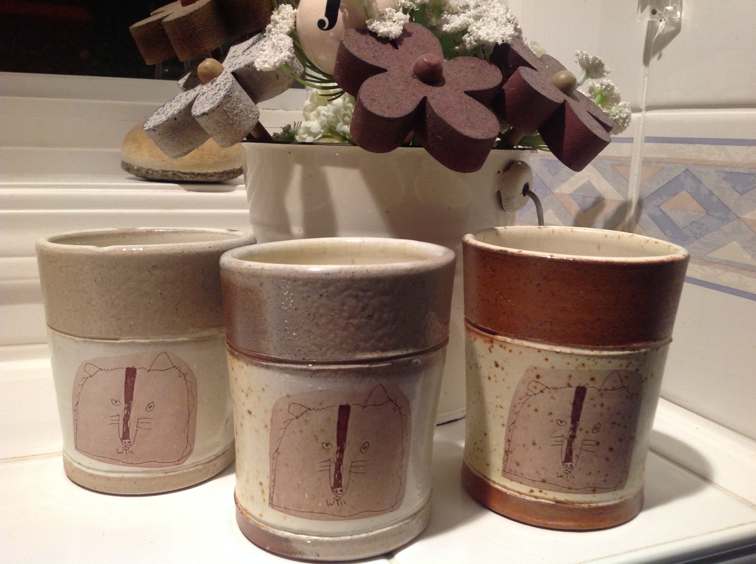 The other was a gift for each of us from Justin.  He insisted that his gift be the first one we opened on Christmas morning.  Inside his beautiful wrapping (he might need a little work on this?) each of us received a mug that Amy had made and the two of them had designed.  On each mug was the wolf that you’d drawn in kindergarten.  I was unaware that transposing a real image was even possible on a handmade piece of pottery and am still in awe that he would know how precious this gift would be to all of us.  They are priceless and I know I will treasure them forever.
